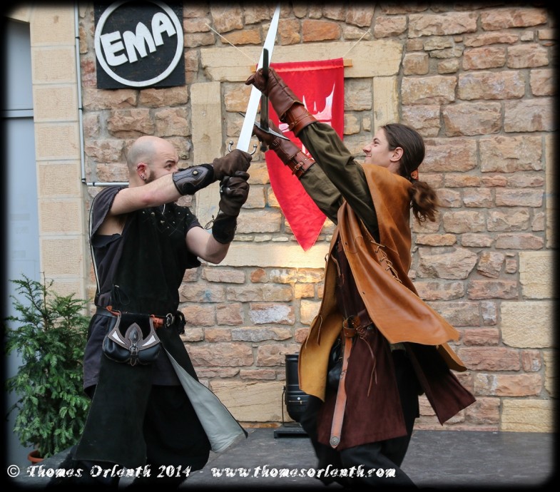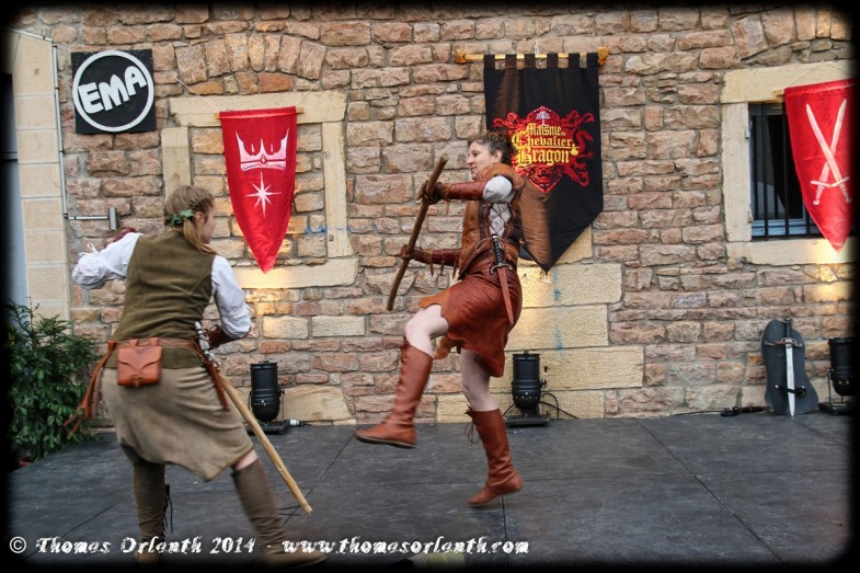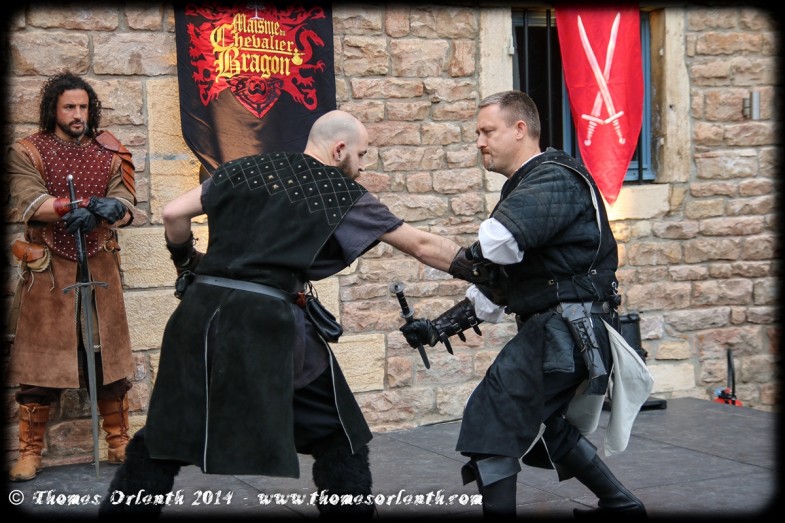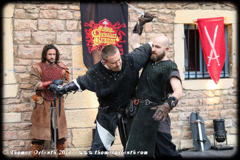 Il est assez rare de voir des démonstrations de combat s’appuyant sur les AMHE (Arts Martiaux Historiques Européens) dans des fêtes médiévales. Soulignons donc la belle prestation de la Maisnie du Chevalier Bragon.